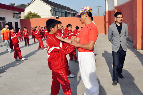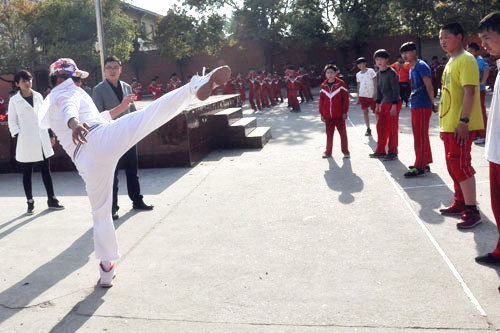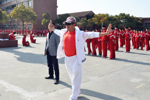 总教练在视察校园的同时,一一认真检查,对教练武术进行了详尽的指导,对老师教学工作提出了自己的关心。当总教练停下脚步给正在上课的学生们示范正确的动作时,在场的学生无不响起阵阵掌声,一则欢迎总教练在百忙之中来学校视察指导,二是惊叹于总教练对武术所保持的这种坚持不懈的精神,这种精神正是我们教练、学生所需要学习的,只有对武术始终保持一种热爱与崇拜,才可以达到一定的高峰,最终才有可能收获荣誉。