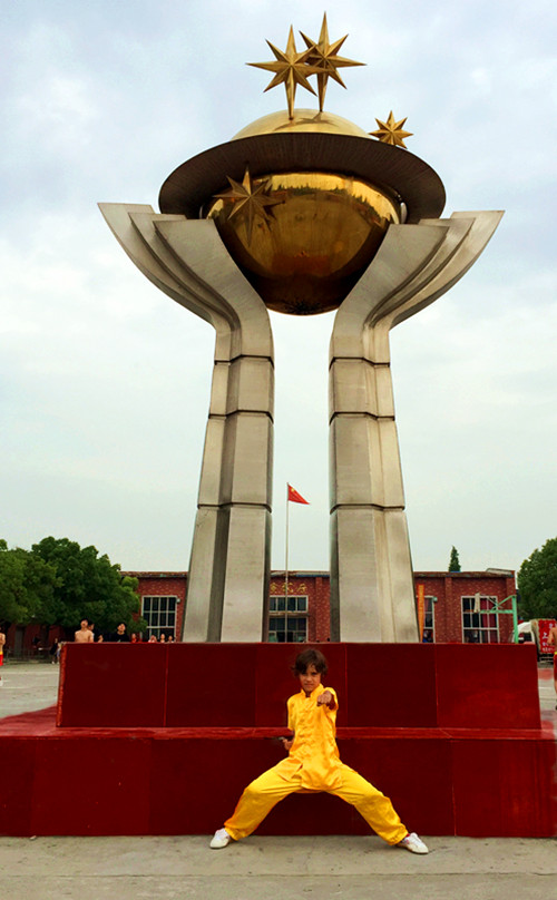 “夏练三伏,冬练三九。”在松江武校的操场上,都会看见一个卷头发白皮肤的小朋友在跟自己的教练一招一式的练着。这个人便是跟父母来松江武校追寻自己“功夫梦”的外国小朋友“大宝”。 随着武术的发扬与传承,越来越多的外国武术爱好者来到中国学习中国功夫,位于上海市的松江武校每年都会迎来几批外国友人来校参观学习武术,并且有很多的外国朋友因为喜欢武术而留在松江武校进行长期的学习训练。“大宝”也是其中的一员,不远万里来到中国,并选择了一所武术专业比较强的学校学习。当问及学习武术苦不苦累不累的时候,大宝用他不太成熟的中文回答道:“不,喜欢”。从这简单的话语中能看出武术已经走进了他的心里。