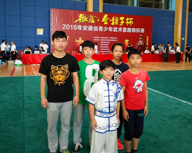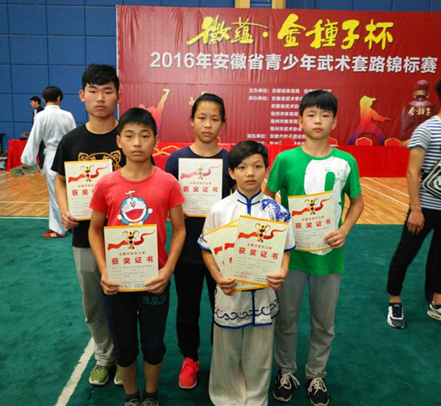 松江武校学生朱家乐,靳家梅,方建涛,杨家乐,陶武五名同学代表亳州参加本次武术套路锦标赛,共参加九个项目的比赛取得了3个,1个亚军,2个季军,1个第四,1个第五的骄人成绩。